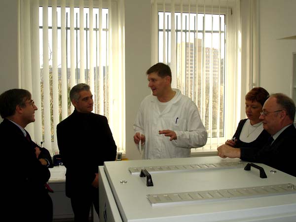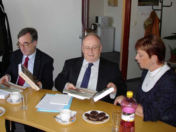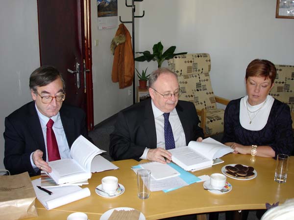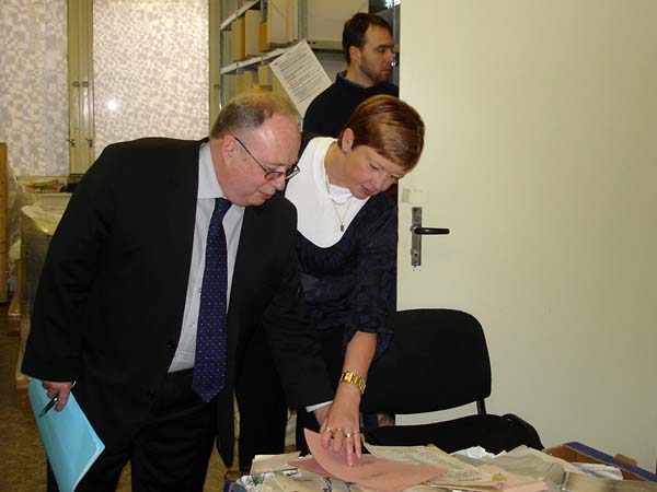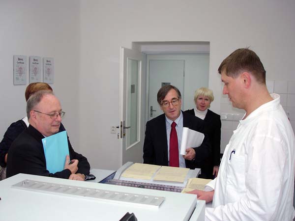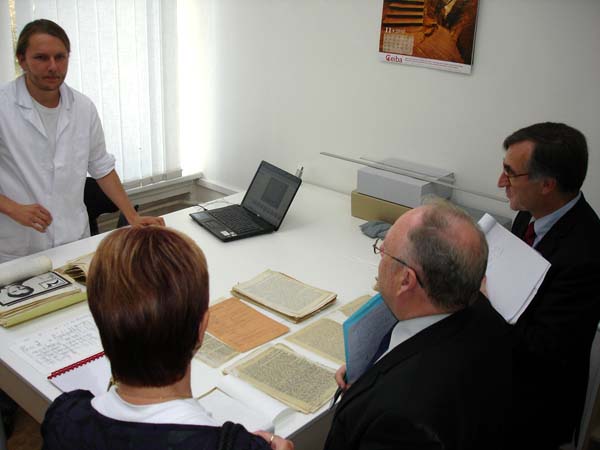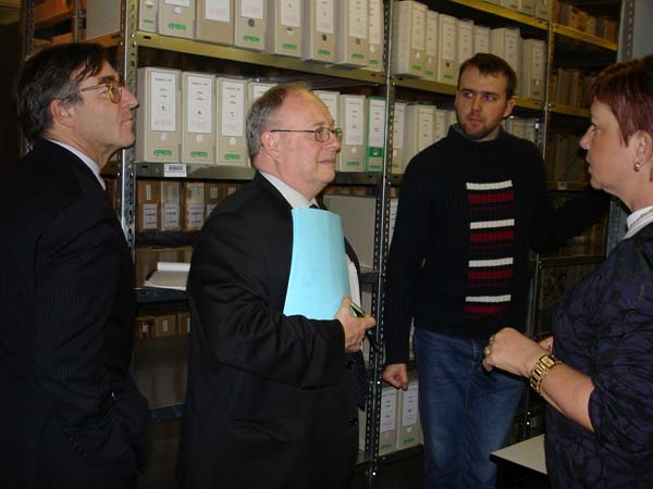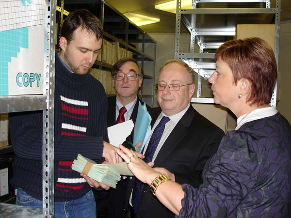 Praha, 12. listopadu 2010 – Do Archivu bezpečnostních složek zavítali v rámci svého několikadenního pobytu v ČR zástupce ředitele Service interministériel des Archives de France pan Pascal Even a ředitel archivu a dokumentace SNCF pan Henri Zuber za doprovodu PhDr. Lenky Linhartové z Odboru archivní správy a spisové služby Ministerstva vnitra. Na pracovišti ABS v Braníku je přijala zástupkyně ředitele Archivu Mgr. Světlana Ptáčníková spolu s vedoucím oddělení operativních svazků rozvědky a VKR Mgr. Pavlem Navrátilem a vedoucím oddělení péče o fyzický stav archiválií panem Martinem Kostlánem, DiS. Návštěvníci byli nejprve podrobně seznámeni s organizací Archivu, spravovanými archiváliemi, způsobem jejich zpřístupňování a prezentací odborných výstupů Archivu. Podrobné dotazy a obsáhlá diskuze nad některými problémy dosvědčovaly, že je tato témata hluboce zaujala. Při prohlídce depozitářů oddělení operativních svazků rozvědky a VKR byla hostům prezentována mravenčí práce při třídění tzv. „skartu VKR“, (pytlů, obsahujících jak makulaturu, tak roztrhané písemnosti, které je třeba roztřídit do věcných skupin, zrekonstruovat a později zpracovat) i samotné archiválie. Následovalo seznámení s oddělením péče o fyzický stav archiválií. Zahraničním hostům byla předvedena jednotlivá pracoviště oddělení a jejich vybavení a zároveň byli podrobně seznámeni s rozsahem činností, které toto oddělení zajišťuje. V rámci odborného výkladu provedeného příslušnými zaměstnanci oddělení jim byly předloženy ukázky typických restaurátorských a konzervátorských zásahů, které se na oddělení provádějí. Delegace byla rovněž podrobně seznámena s metodikou provádění průzkumu fyzického stavu fondů aplikovanou v ABS. O tyto činnosti měli oba hosté živý zájem, což dokazovaly jejich četné, odborně zaměřené dotazy. Další části prohlídky bylo seznámení s provozem hromadného odkyselování využívající k tomuto účelu technologii Neschen C 500. Zaměstnanec oddělení odpovědný za obsluhu a provoz této technologie podal oběma hostům podrobný výklad ve francouzštině, což jistě přispělo k vyšší míře pochopení obecného principu fungování této metody. I v tomto případě byl zájem o informace ze strany zahraniční delegace vysoký. O spokojenosti návštěvníků svědčilo závěrečné poděkování, při němž vyzdvihli skutečnost, že díky právě proběhlému setkání poznali něco opravdu nového a inspirativního.