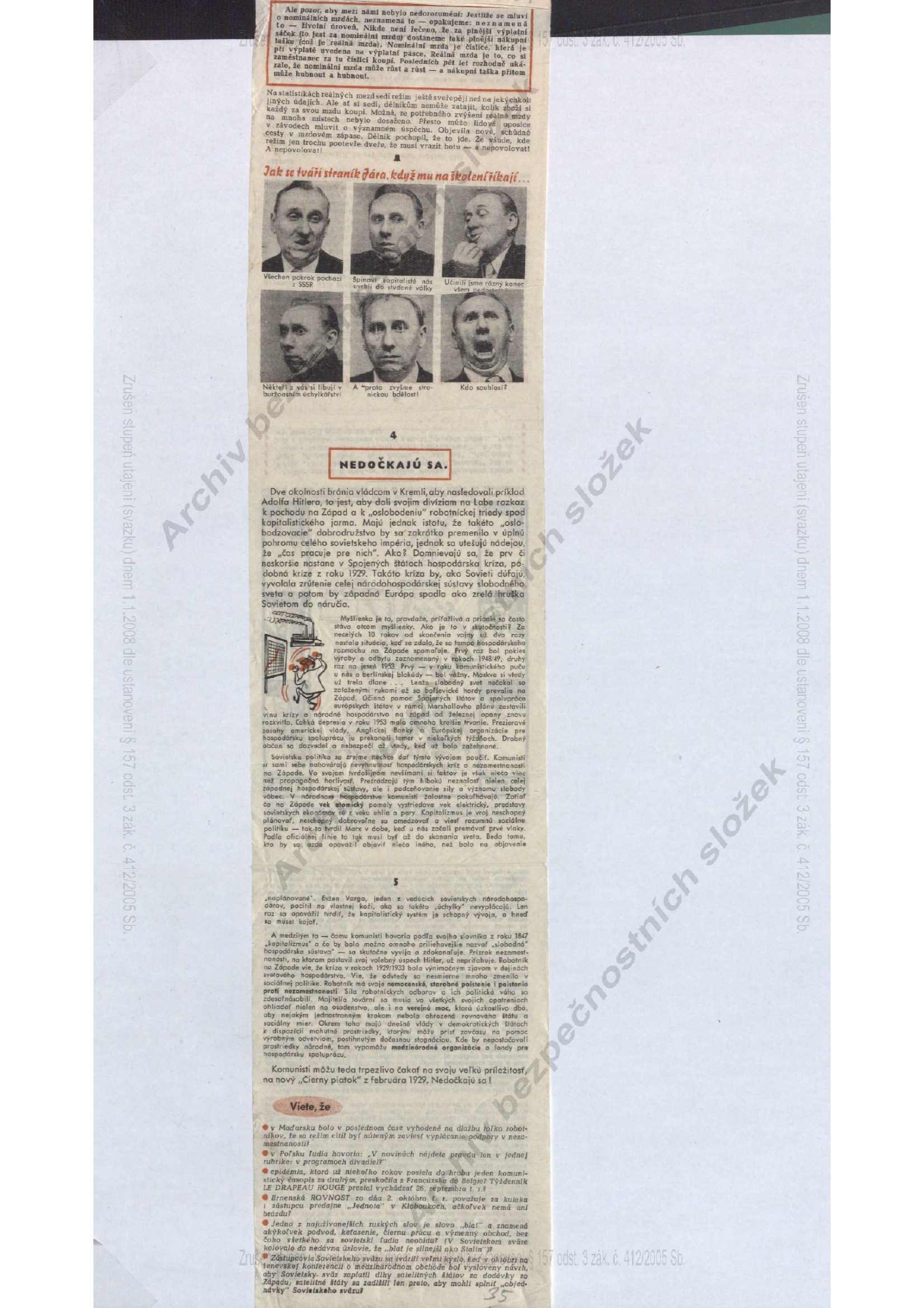 Ve vyšetřovacím spisu arch. č. V-502 CB je několik těchto letáků součástí dokumentů zabavených během domovní prohlídky u pana Ing. Stanislava Veselého. Jeho slibně se rozvíjející kariéru vysokého úředníka ve významných národních firmách ukončily politické změny po roce 1948. Kvůli nepříznivému kádrovému posudku se pan Veselý ocitl jako rýsovač ve válcovně plechu v závodech v Milevsku nedaleko Písku. Před spolupracovníky se netajil svým postojem k tzv. lidově demokratickému zřízení. Byl známý častým vyprávěním politických anekdot namířených proti vrcholným představitelům KSČ a posloucháním „zahraničního nepřátelského rozhlasu“. Právě z vysílání RFE se dozvěděl o protirežimních písemnostech shazovaných v rámci operace „Veto“.[1] Rozhodl se uposlechnout rozhlasové výzvy k čs. občanům, aby tyto letáky sbírali a pokusili se je rozšířit mezi ostatní obyvatele.