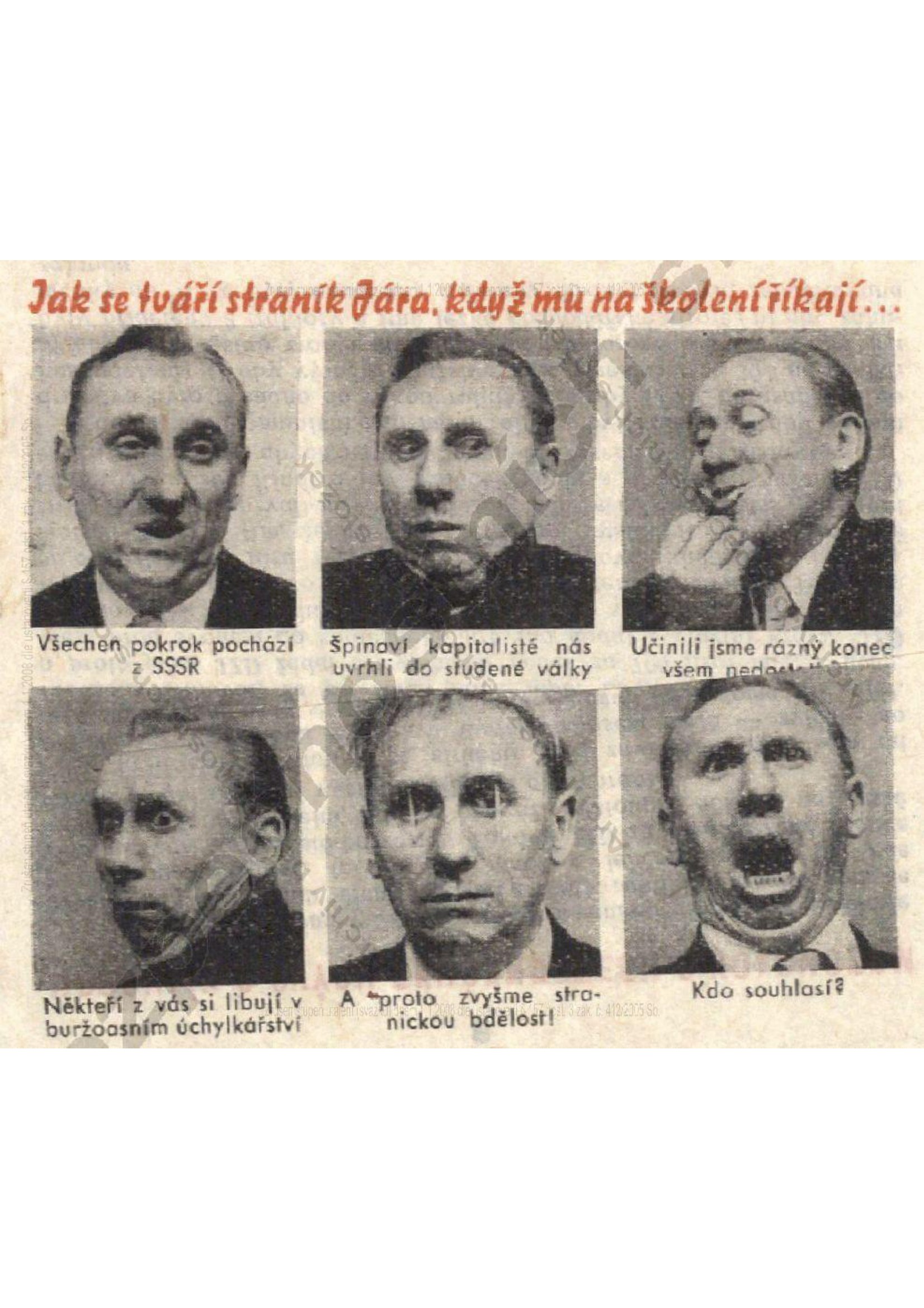 Za zmínku stojí i životní příběh filmového herce a komika Járy Kohouta, jehož grimasy jsou obsahem jednoho z letáků zabavených v bytě pana Stanislava Veselého. Jára Kohout se rozhodl pro odchod do exilu na podzim roku 1948. Opustil Československo v hereckém kostýmu kohouta přímo během přestávky divadelního představení uspořádaného pro pohraničníky v Aši. V roce 1951 pak byl Pavlem Tigridem přizván k působení do nově vznikající redakce rozhlasové stanice Rádio Svobodná Evropa v Mnichově a po krátké době přešel jako redaktor a hlasatel do pobočky RFE v New Yorku, kterou vedl Ferdinand Peroutka.