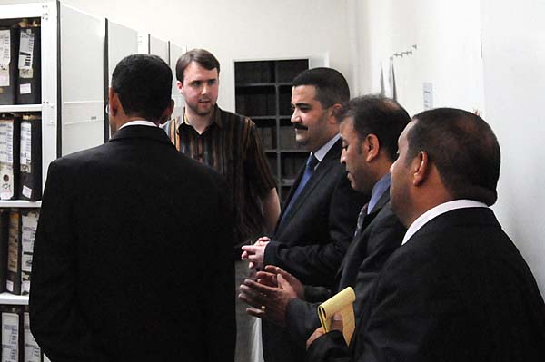 Praha, 19. července 2011 – Ústav pro studium totalitních režimů a Archiv bezpečnostních složek navštívila delegace vedená ministrem pro lidská práva irácké vlády, jeho excelencí ing. Mohammedem S. Al-Súdáním. Irácká delegace, jejímiž členy byli mj. ředitel Centra pro dokumentaci zločinů minulého režimu Saád Gatu‘ Dakhel, generální ředitelé pro mezinárodní vztahy a právní záležitosti Abdel Khudhair Abbás a Haldar Husajn Al-Ugailí a zplnomocněný vyslanec Irácké republiky v České republice pan Khálíd Al-Khero, je na návštěvě ČR s cílem seznámit se s postupy vyšetřování zločinů komunismu a aktivitami ÚSTR, ABS, ale i dalších archivních a vzpomínkových organizací v ČR. Delegace si vyslechla informace o vzniku a činnosti ÚSTR a ABS, se zvláštním důrazem na vyrovnávání se s dědictvím komunismu, vzdělávací aktivity a legislativní zakotvení činností od předsedy poradního kolegia ředitele ÚSTR Miroslava Lehkého, prvního náměstka PhDr. Jana Kalouse, Ph.D., první zástupkyně ředitelky ABS PhDr. Zlatuše Kukánové a vedoucího kanceláře ředitelky ABS Mgr. et Mgr. Lubomíra Augustína a zastupujícího ředitele odboru zkoumání totalitních režimů Mgr. Jaroslava Pinkase. Ministr Al-Súdání představil činnost a aktivity svého úřadu i specifické úkoly a metodiku Centra pro dokumentaci zločinů minulého režimu (režim strany Baas 1968–2003). Iráčanům bolestné dědictví minulého režimu připravilo obrovský úkol identifikace obětí a pachatelů zločinů, které přímo zasáhly miliony osob a rodin. Sdílení zkušeností s ÚSTR a ABS bylo hlavním cílem návštěvy v České republice. Zvláštní pozornost při prohlídce pracovišť věnovali členové delegace digitalizaci dokumentů a jejich uchovávání a restaurování. V doprovodu Mgr. Pavla Navrátila hosté navštívili badatelnu a archivní depot, kde jim byl představen výběr archiválií ukazujících zájmovou činnost bývalé československé rozvědky o Irák.