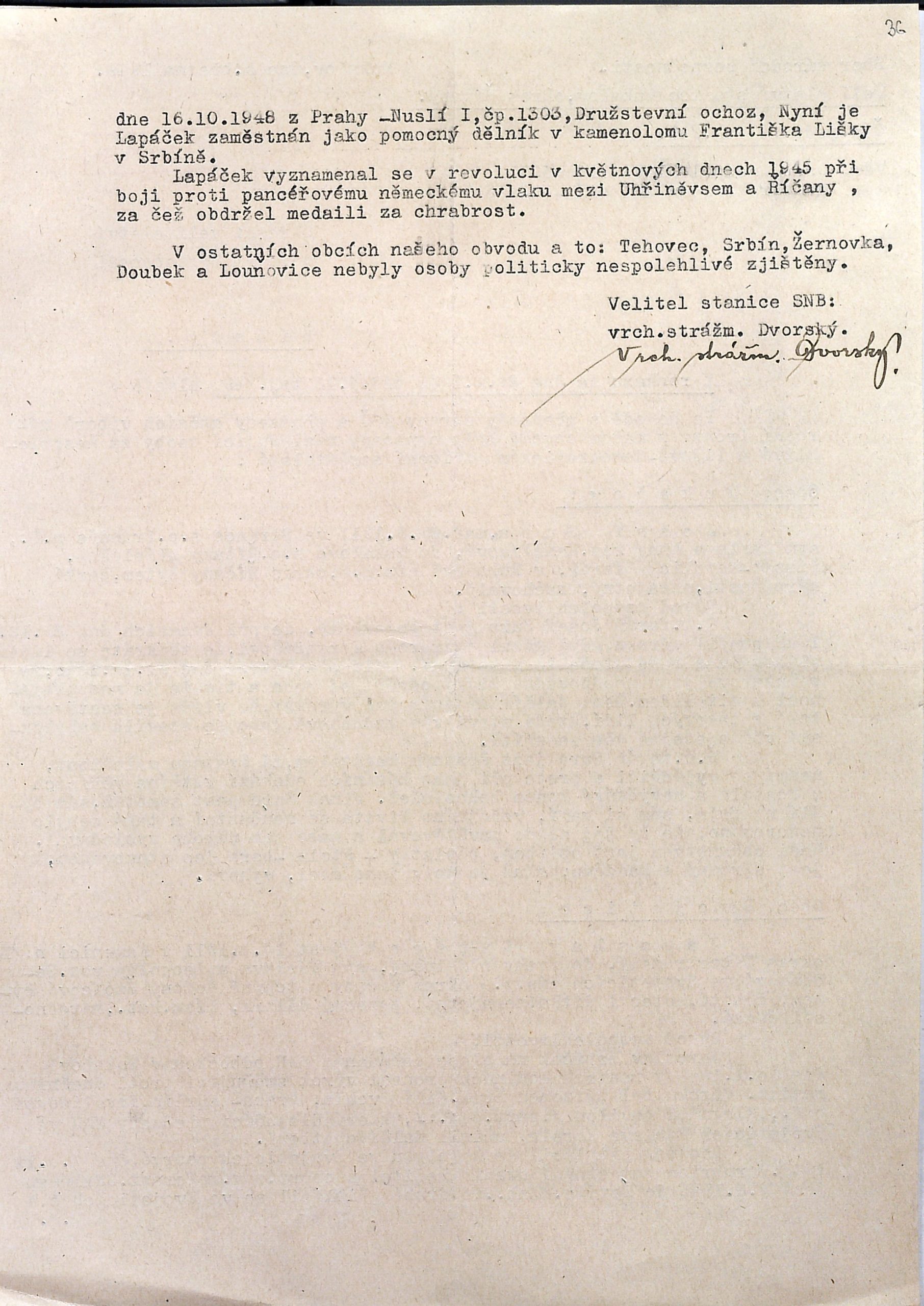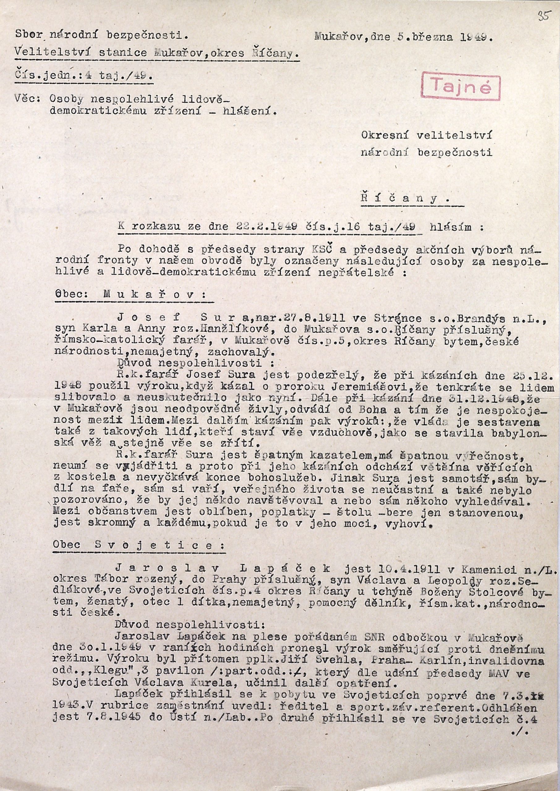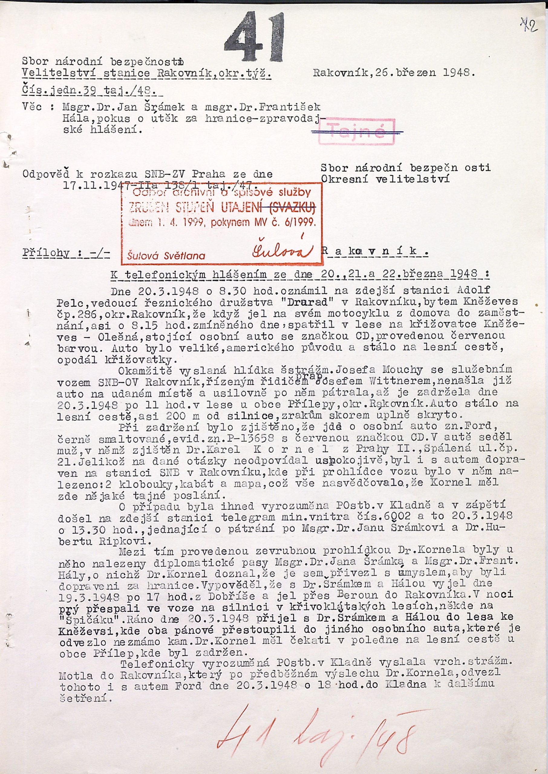 do aplikace eBadatelna byly přidány digitální reprodukce vybraných archiválií z fondů okresních útvarů StB v bývalém Pražském kraji a ve Středočeském kraji (B 1), konkrétně okresních oddělení MV a oddělení StB okresních správ SNB. Jde o badatelsky žádané archiválie, vzniklé převážně ve čtyřicátých až sedmdesátých letech 20. století. Zastoupeny jsou i starší dokumenty, některé dokonce z 19. století. Důležitým historickým pramenem, který zpřístupňujeme, jsou památníky četnických stanic a stanic SNB. Obsahují různorodý materiál – kromě vlastních zápisů a jejich konceptů například i rozkazy, pokyny, dobové vyhlášky a další tiskoviny. Za zmínku dále stojí dokumenty k událostem roku 1945, seznamy tzv. nespolehlivých a nepřátelských osob z přelomu čtyřicátých a padesátých let, členů nekomunistických politických stran prověřovaných po únoru 1948, písemnosti k odchodům do exilu, a také informace k zatýkání osob z konce čtyřicátých a počátku padesátých let. Nechybí rovněž dochované plány práce některých oddělení StB a jejich vyhodnocení ze sedmdesátých let. Z fondu O-StB Kladno jsou publikovány knihy stálé služby z let 1948–1963, z fondu OO MV Kutná Hora svodky událostí z let 1963–1969 a z fondu O-StB Mělník rozsáhlý soubor ke tzv. státobezpečnostní ochraně železniční dopravy cca z let 1952–1963. Vybrány byly i archiválie k všeobecně známým osobám – k bývalému ministru protektorátní vlády Jiřímu Havelkovi nebo politikům lidové strany Janu Šrámkovi a Františku Hálovi, týkající se jejich pokusu o odchod do exilu. Za perličku lze považovat fotoalbum legionářů v Rusku a také různé materiály spolku Selská jízda z třicátých a čtyřicátých let 20. století, které jsou součástí dokumentace k akci StB „Jezdec“. Celkem jde o více jak 24 000 skenů.