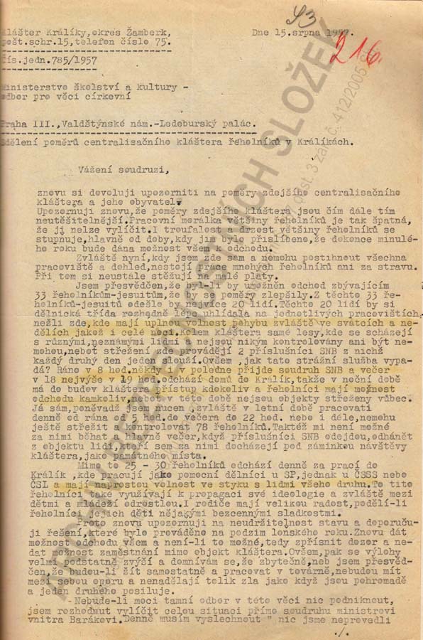 V pátek 27. dubna 2012 byl v klášteru Kongregace Nejsvětějšího Vykupitele – redemptoristů na Hoře Matky Boží v Králíkách – Dolní Hedeči, okres Ústí nad Orlicí, otevřen Památník obětem internace, koncipovaný jako stálá expozice v přístavbě na prvním nádvoří kláštera. Vznikl pod záštitou pražského arcibiskupa Mons. Dominika kardinála Duky, OP. Jeho zřizovatelem je Muzeum čs. opevnění z let 1935–38, Pěchotní srub K-S 14 „U cihelny“ Králíky a provozovatelem JK Consulting Group, s.r.o. v Králíkách – Dolní Hedeči. Ke vzniku památníku přispěla řada osob a institucí, ať již odbornou činností či finanční podporou. Archiv bezpečnostních složek poskytl kopie archiválií z činnosti bývalé Státní bezpečnosti, především pak ze skupiny fondů vyšetřovacích spisů, z tzv. historického fondu a z fondu personálních spisů. Jednalo se především o vazební fotografie z vyšetřovacích spisů, např. jezuity Antonína Zgarbíka, basiliána Mariána Sučka, františkána Františka Bedřicha Smištíka, redemptoristy Jana Zemánka, dále o dokumenty ke sledování řeholníků Státní bezpečností v králickém klášteru a později i v jejich občanském životě. Kromě toho byly použity také dokumenty o vyšetřovacích metodách StB a archiválie z personálních spisů jednotlivých příslušníků SNB, podílejících se na dozoru v centralizačním klášteru v Králíkách. Slavnostní vernisáže se zúčastnili pracovníci ABS, vedoucí oddělení operativních svazků a vyšetřovacích spisů Pavel Kugler a spoluautorka projektu Petra Gabrielová. Památník tohoto typu je zatím prvním v České republice. Uvádí návštěvníky do historie let 1950–1961, kdy zde prošlo centralizací (1950–1955) a internací (1956–1961) pod dozorem bezpečnostních složek více než pět set řeholníků z různých řádů a kongregací. Výstava mapuje jednak historii samotného místa v daných letech, ale také životní osudy řeholníků, kteří tímto klášterem prošli, a jejich dozorců. Věnuje se i následné persekuci řeholníků v táborech nucené práce a ve věznicích. Bližší informace k návštěvě památníku a k doprovodným akcím jsou zveřejněny na webových stránkách www.pamatnikkraliky.cz.